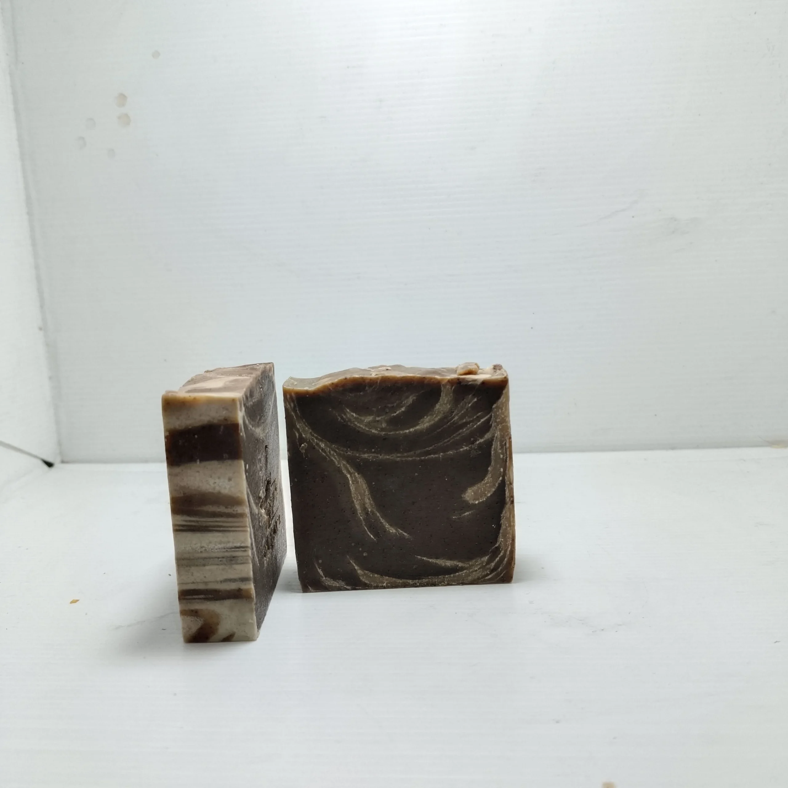 Made with vegan oil (Coconut Oil, Castor Oil, Olive Oil, Sunflower Seed Oil),Coffee scrub, Goat’s Milk.